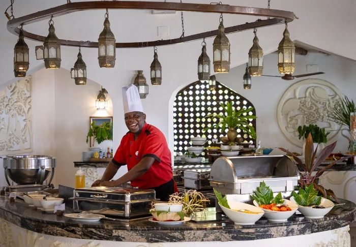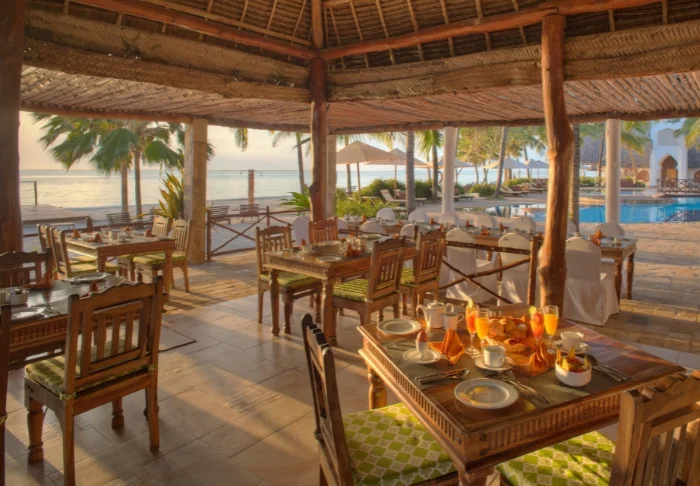 Hotellin ravintolassa tarjotaan herkullisia paikallisia kala- ja äyriäisruokia sekä vaihtelevia annoksia afrikkalaisesta, intialaisesta ja arabialaisesta keittiöstä. Ruoka on tuoretta ja huolella valmistettua. Aamiainen tarjoillaan buffettina, jonka lisäksi keittiöstä on mahdollista tilata toiveittesi mukaan valmistettuja kananmunia ja pannukakkuja.
