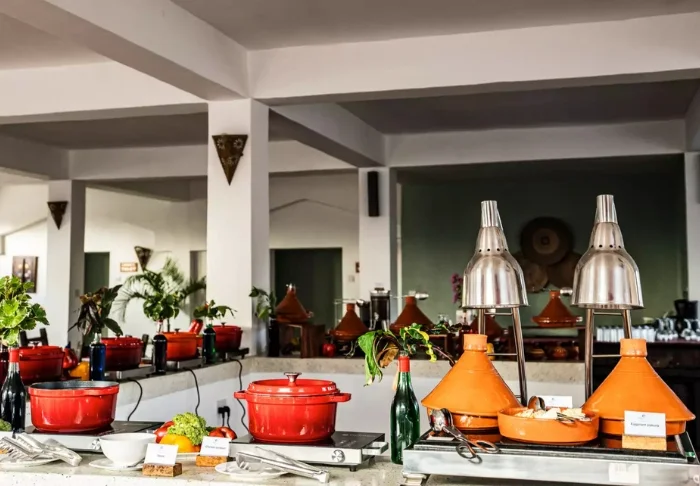 Hotellin ravintola Marhaba on ulkoilmaravintola, joka sijaitsee rannalla aivan lähellä merta. Ravintolassa voit nauttia illallisen lisäksi kauniista auringonlaskusta. Marhaba on tunnettu erinomaisista kala- ja äyriäisruoistaan. Jos et välitä kalasta ja äyriäisistä, tarjolla on myös perinteisiä ja kansainvälisiä a la carte -annoksia.