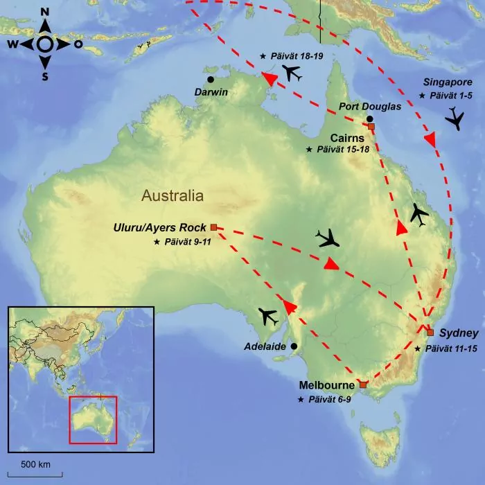 Koe sykkivä Singapore ja Australian suuret kontrastit. Down Underissa sinua odottavat Melbourne, Sydney, punainen aavikko ja trooppinen Cairns.