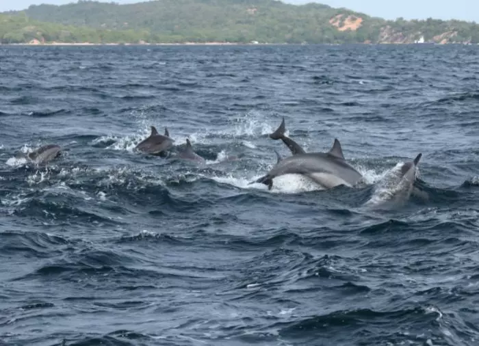 Seuraavien tuntien ajan vene kiertelee sinisillä aalloilla merten jättiläisten jäljillä. Retken aikana voit nähdä sinivalaita, hetulavalaita, kaskelotteja ja eri delfiinilajeja, sillä leikkisät delfiinit uiskentelevat mielellään veneiden lähellä.
