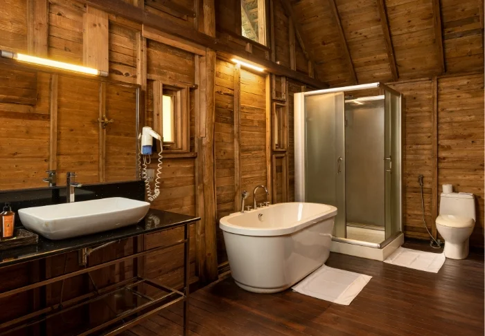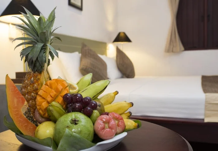 Oleskelusi aikana majoitut Deluxe-huoneessa, jossa on perinteiset puiset kalusteet ja värikkäät tekstiilit lämpimän tunnelman luomiseksi. Kaikki mukavaan vierailuun tarvittavat varustelut löytyvät: ilmastointi, WiFi, tallelokero, TV, puhelin sekä teen- ja kahvinvalmistusvälineet. Kylpyhuoneessa on suihkunurkkaus ja kylpytuotteita, ja omalla parvekkeellasi voit rentoutua kuunnellen lintujen laulua ja kevyttä tuulen huminaa, joka kulkee puiden latvojen läpi.