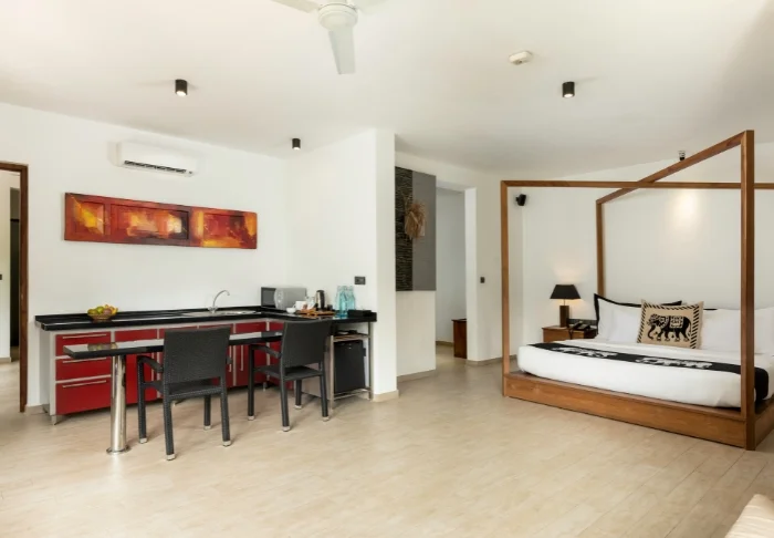 Majoitut lähtökohtaisesti tilavassa Superior-huoneessa, jonka rustiikki sisustus yhdistää tummat puuhuonekalut ja kirkkaat tekstiilit lämpimäksi, paikalliseksi kokonaisuudeksi. Omalla parvekkeellasi voit ihastella näkymiä puutarhaan ja merelle, missä palmut huojuvat tuulessa ja aaltojen kohina luo täydellisen taustan aamukahville tai rauhalliselle lukuhetkelle. Kaikissa huoneissa on ilmastointi, WiFi, kattotuuletin, tallelokero, minibaari, puhelin, TV, tee- ja kahvinkeittovälineet sekä kylpyhuone, jossa on suihkunurkkaus, kylpytakki ja tossut sekä laadukkaat kylpytuotteet.