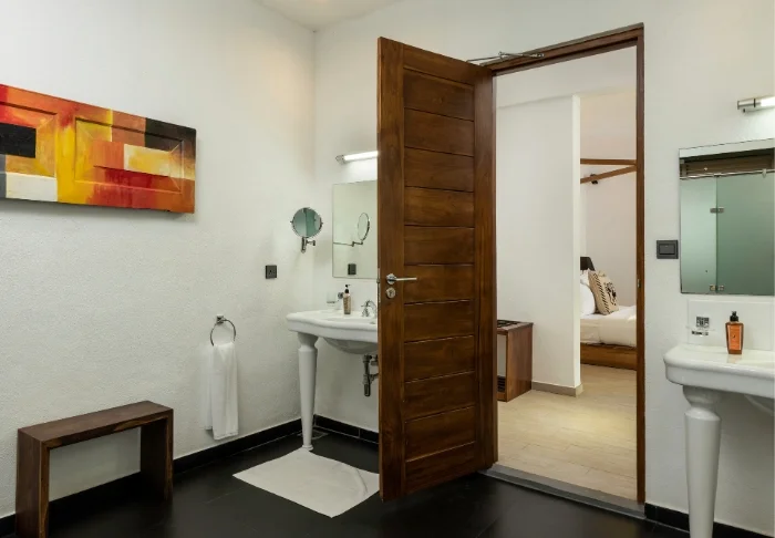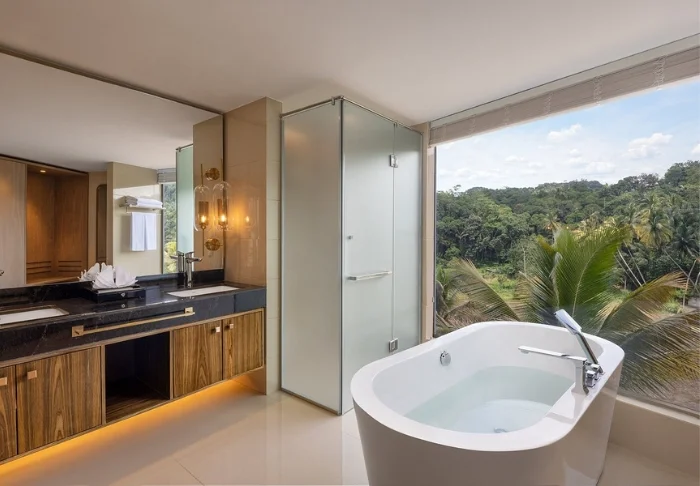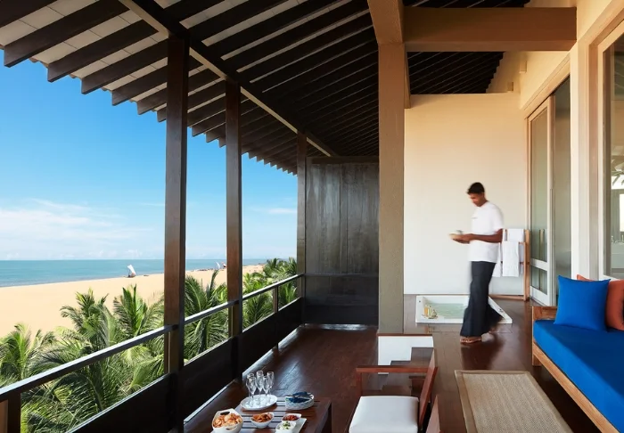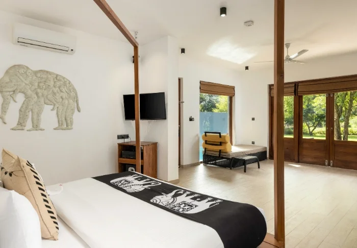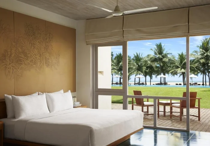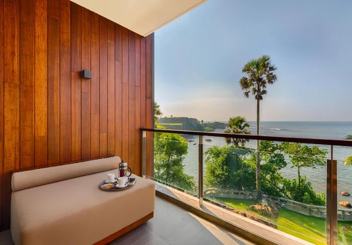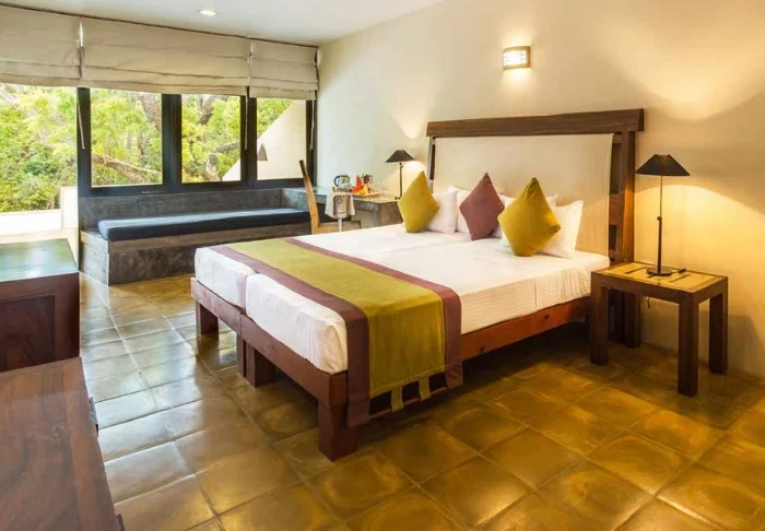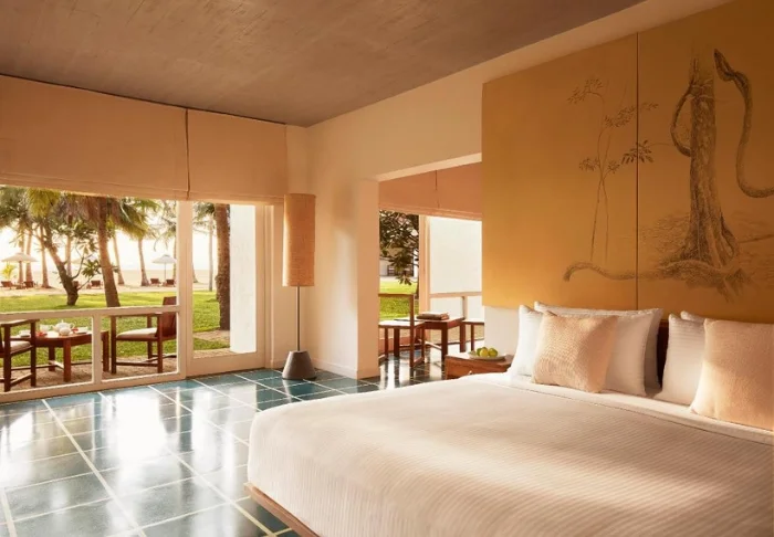 Hotellin sisustuksessa on vahvasti läsnä japanilainen minimalismi, mikä näkyy erityisesti Deluxe-huoneessa, jossa majoitut matkan aikana. Huoneet ovat tyylikkään moderneja, ja niiden rauhalliset sävyt sekä harkitut yksityiskohdat ja luonnonmateriaalit sekä kauniit puutyöt tuovat niihin ajattoman, mutta rennon tunnelman. Täällä nautit mukavuuksista kuten ilmastoinnista, WiFistä, kattotuulettimesta, minibaarista, tallelokerosta, teen- ja kahvinkeittovälineistä sekä TV:stä. Kylpyhuoneessa on kylpytakit ja tossut, suihku sekä laadukkaat kylpytuotteet. Omalla parvekkeella tai terassilla päivä alkaa rauhallisesti kupillisella perinteistä srilankalaista teetä – samalla voit ihailla horisonttiin avautuvaa näkymää.