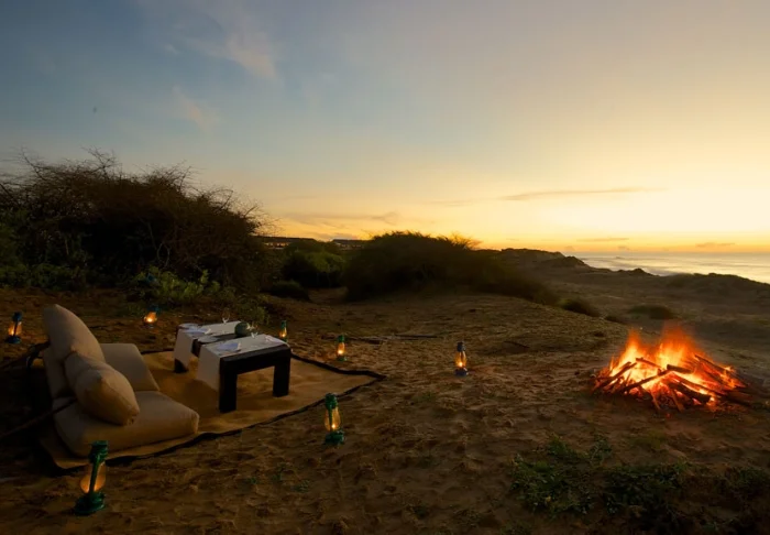 Hotellilta on vain muutama askel rannalle, jossa hengenpelastajat valvovat sekä aaltoja että villieläimiä, kuten norsuja, varaaniliskoja ja apinoita. Nämä eläimet liikkuvat vapaasti alueella ja saattavat toisinaan uteliaina astua myös hotellin pihapiiriin. Hiekkadyynien keskeltä löytyy hotellin rantabaari, jossa voi nauttia virkistävän juoman merimaiseman upeissa puitteissa.