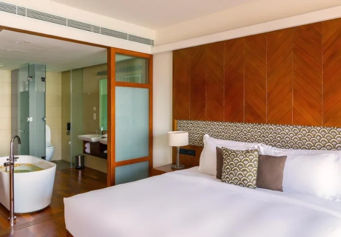 Yövyt viihtyisässä Premium Terrace -huoneessa, jossa on tyylikkäitä puuyksityiskohtia ja pehmeitä tekstiilejä. Tilaa riittää, ja varustelu on huippuluokkaa: huoneesta löytyy ilmastointi, huonepalvelu, WiFi, minibaari, tallelokero, kahvin- ja teenkeittovälineet sekä TV. Tilavassa kylpyhuoneessa odottavat ylelliset kylpytuotteet, kylpytakki ja kylpyamme suihkulla. Suurelta yksityiseltä terassiltasi avautuu kaunis näkymä resortin vehreään puutarhaan.