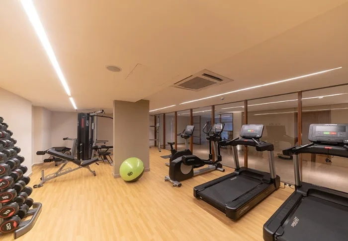 Jos päädyt syömään liikaa, älä huoli. Voit pitää kuntosi kuosissa hotellin kuntokeskuksessa, jossa on laaja valikoima erilaisia kuntoilulaitteita ja painoja.