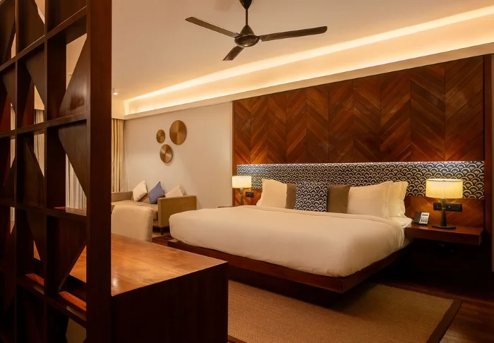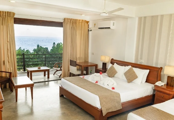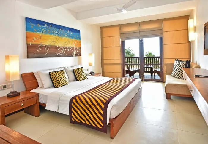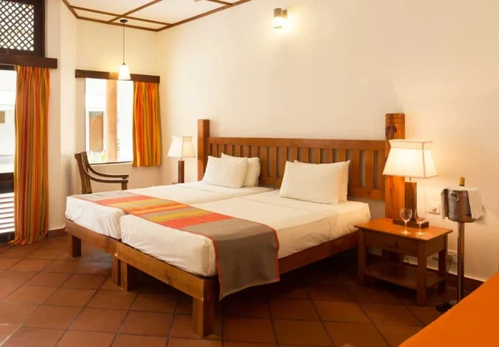 Majoitut lähtökohtaisesti Deluxe-huoneessa. Huoneiden sisustus on valoisa ja yksinkertainen, mutta jokaisessa huoneessa on mukavuuksia, kuten ilmastointi, WiFi, minibaari, TV, puhelin, teen- ja kahvinkeittovälineet sekä kylpyhuone suihkulla ja ilmaisilla kylpytuotteilla. Omalla parvekkeella voit aistia lämpimän merituulen ja nauttia trooppisesta tunnelmasta, jonka hotellin altaat, palmupuut ja taustalla avautuva Intian valtameri luovat.