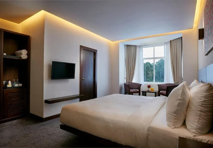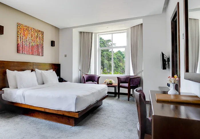Majoitut lähtökohtaisesti tilavaan ja hillityin, lämpimin sävyin sisustettuun Deluxe-huoneeseen. Huoneessa on vaatekaappi, työpöytä, pieni oleskelunurkkaus sekä kylpyhuone, jossa on suihku ja tarvittavat kylpytuotteet. Koska ylänköalueen ilmasto voi olla viileä, huoneessa on lämmityslaite. Lisäksi käytössäsi ovat WiFi, minibaari, tallelokero sekä teen- ja kahvinkeittovälineet.