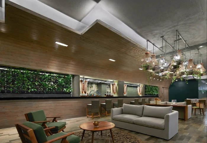 Lodge koostuu 20 mökistä, jotka sijaitsevat eri puolilla vehreää teeplantaasia. Kaikki mökit on rakennettu kierrätysmateriaaleista. Itse mökit ovat vanhoja laivakontteja, mutta niiden seinät ja katot on tehty bambusta ja terassit on koottu ratapölkyistä.