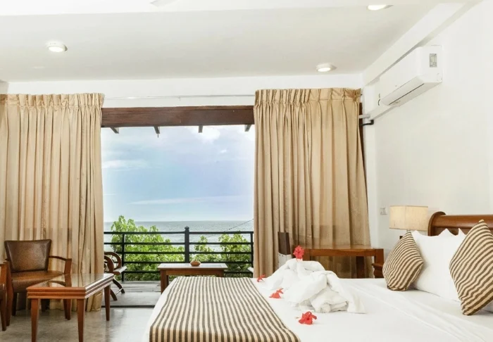 Majoitut lähtökohtaisesti modernissa, minimalistisessa Deluxe-huoneessa, jossa vaaleat sävyt ja srilankalaiset yksityiskohdat luovat harmonisen tasapainon yksinkertaisuuden ja lämmön välillä. Huoneessa on ilmastointi, WiFi, TV, tallelokero, kirjoituspöytä, oleskelualue, puhelin ja minibaari, ja kylpyhuoneesta löytyy sekä kylpyamme että suihku sekä kylpytuotteet. Lisäksi käytössäsi on oma parveke, jolla voit rauhassa lukea kirjaa ja nauttia puutarhan tunnelmasta.