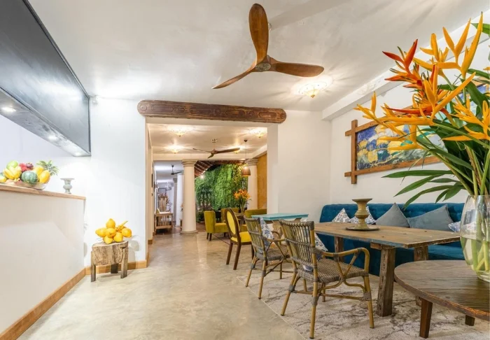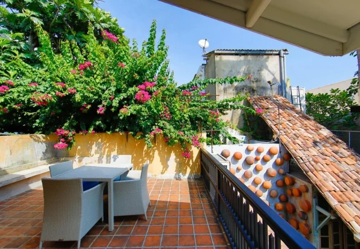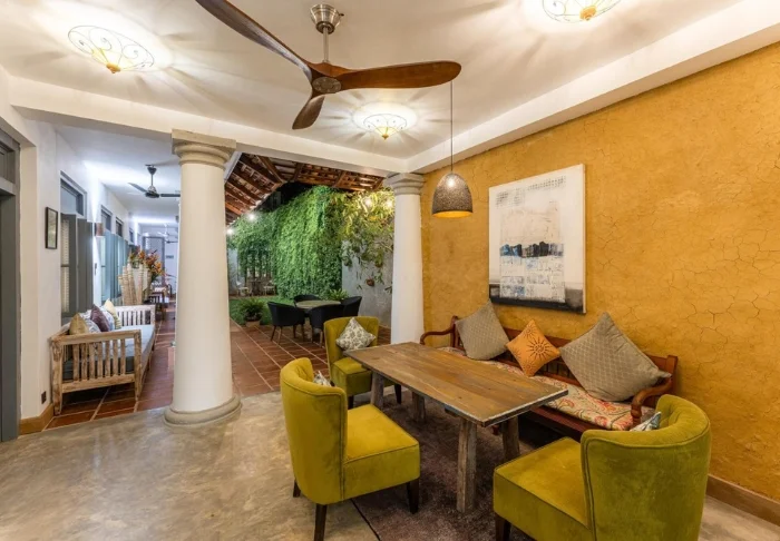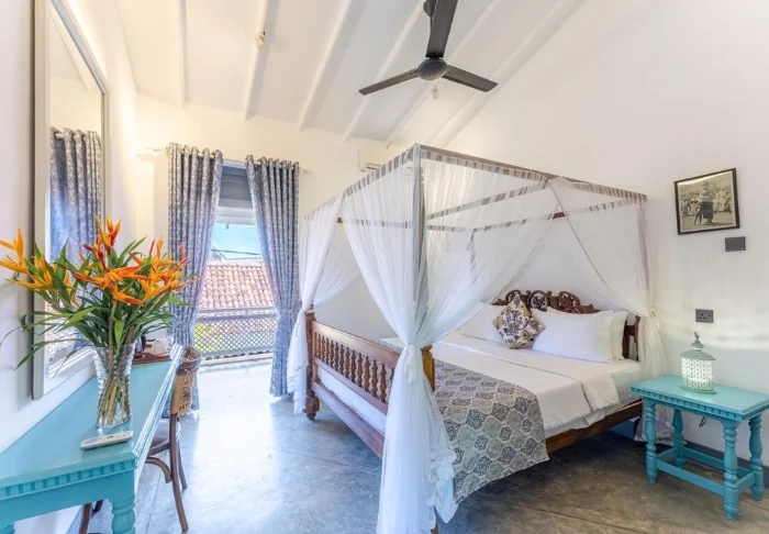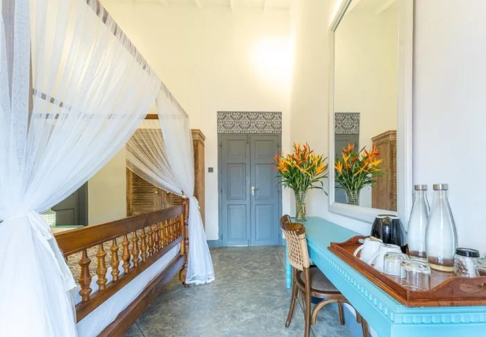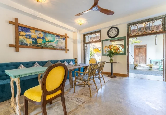 Parawa Housessa majoittuminen on elämys jo itsessään. Hotelli on vuosien varrella säilyttänyt alkuperäiset yksityiskohdat, kuten veistetyt puiset ovet, värikkäät ikkunat ja pienet arkkitehtoniset yksityiskohdat. Yhdessä ne luovat nostalgisen ja levollisen tunnelman. Voit myös viettää rauhallisen hetken ylimmässä kerroksessa, missä seikkailujen täyteisen päivän jälkeen voit rentoutua pienellä aurinkoterassilla, jota koristavat vaaleanpunaiset bougainvilleat.