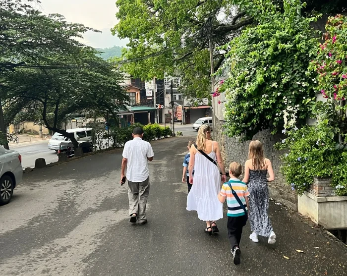 Matka kestää noin 3–4 tuntia ja kulkee upeiden maisemien halki vihreiden teeviljelmien ja pienten laaksojen reunustamana. Reitin varrella pidetään pysähdyksiä, jotta koko perhe voi jaloitella ja kuvata henkeäsalpaavia näkymiä. Matkalla ylitetään myös Sri Lankan korkeimmalla sijaitseva kaupunki, Nuwara Eliya, jota kutsutaan myös Pikku-Englanniksi – vanhat siirtomaa-ajan talot ja huolellisesti hoidetut puutarhat vievät aikamatkalle menneisyyteen.