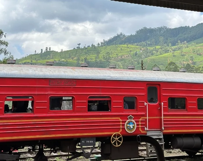 Saavuttuasi Nanu Oyaan nouset perinteisen junan kyytiin, joka mutkittelee rauhallisesti Sri Lankan vehreän ylängön halki. Edessäsi on leppoisia tunteja, joiden aikana voit ihailla maisemia junan mutkitellessa lempeissä kaarteissa, ohittaen vaaleanvihreitä teeviljelmiä ja pikkukyliä, joissa paikalliset lapset vilkuttavat iloisesti matkailijoille. Tämä on elämys, jonka sekä lapset että aikuiset muistavat pitkään – ja ehkäpä yksi koko matkan ikimuistoisimmista hetkistä.