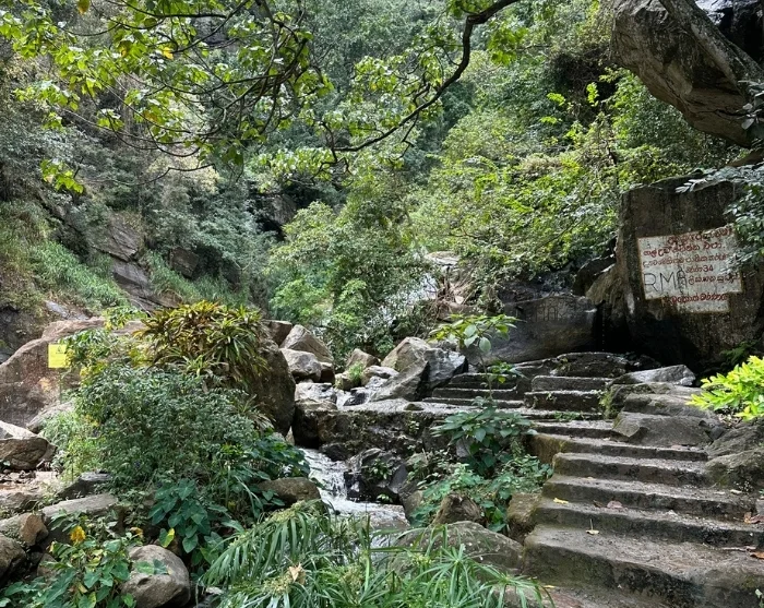 Ensimmäinen pysähdys on Ravana Falls, yksi Sri Lankan leveimmistä ja vaikuttavimmista vesiputouksista. Vesi syöksyy täällä kallioiden läpi 25 metriä alas, pauhaten niin voimakkaasti, että roiskeet tuntuvat melkein ilmassa. Tarun mukaan demonikuningas Ravana asui aikoinaan täällä ja piti prinsessa Sithaa piilotettuna luolassa vesiputouksen takana – tarina, joka herättää mielikuvituksen eloon, kun katselet kuohuvia putouksia.