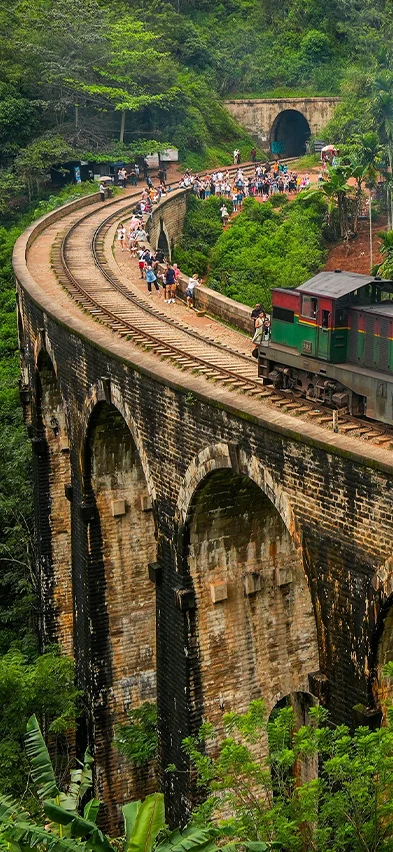 Paluu alas kulkee samaa polkua vehreiden maisemien läpi, jonka jälkeen siirrytte autolla kohti Sri Lankan ehkä kuvatuinta maamerkkiä: upeaa Nine Arch Bridge -siltaa, joka rakennettiin brittiläisen siirtomaa-ajan aikana ilman rautaa tai terästä.