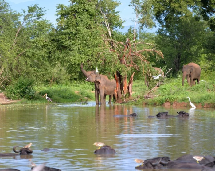 Udawalawe on kuuluisa suuresta villinorsukannastaan, ja niiden näkeminen on hyvin todennäköistä. Saatatte päästä seuraamaan, kuinka norsuperhe poikkeaa reitillenne – suuret yksilöt askeltavat rauhallisesti eteenpäin ja poikaset seikkailevat uteliaina perässä. Se on hetki, joka jää mieleen niin aikuisille kuin lapsillekin.