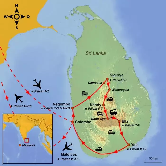 Matka alkaa nyt lähestyä loppuaan, mutta palaat kotiin matkalaukku täynnä kokemuksia ja aistikuvia Sri Lankan kohokohdista ja Malediivien paratiisirannoilta.
