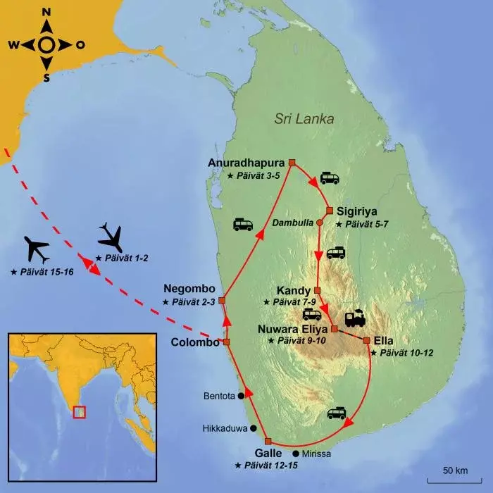 Päivä alkaa Negombon kultaiselta hiekkarannalta. Matka jatkuu koilliseen Sri Lankan kulttuurikolmioon, jossa sukellat maan rikkaaseen historiaan ja kulttuuriperintöön.