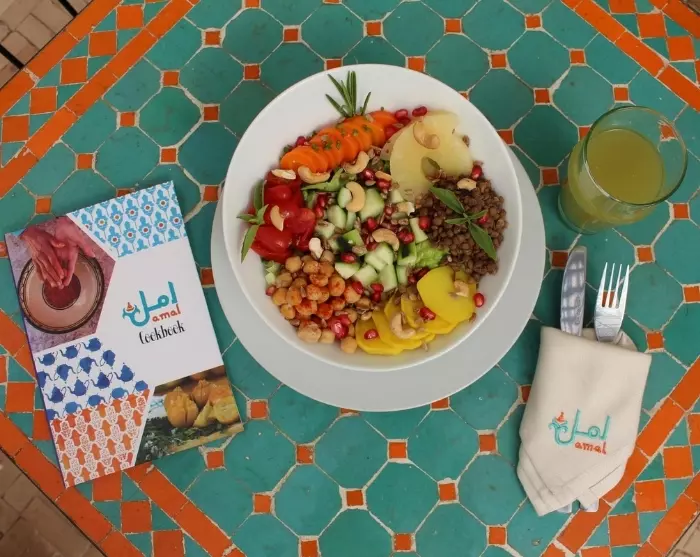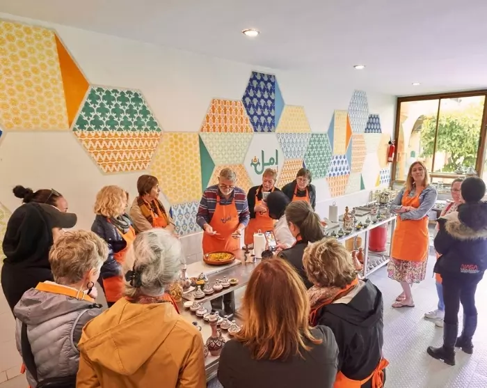 Amal järjestää myös ruoanlaittokursseja, joihin osallistuu sekä matkailijoita että paikallisia. Kurssit tarjoavat aidon marokkolaisen ruoanlaittoelämyksen ja tuottavat samalla tuloja sekä lisäävät tietoisuutta hankkeen yhteiskunnallisesta tavoitteesta. Opiskelijat toimivat opettajina kokkikoulussa koulutetun opettajan ohjauksessa. Osalla matkoistamme pääset osallistumaan ruoanlaittokurssille ja opit valmistamaan perinteisen marokkolaisen lounaan.