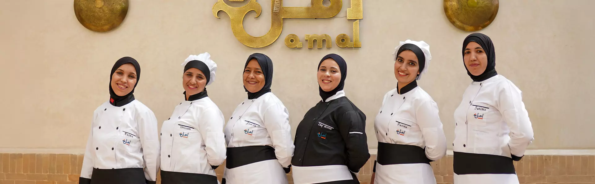 Marokon kolmanneksi suurimmassa kaupungissa, Marrakeshissa, teemme yhteistyötä kansalaisjärjestön Amal Women’s Training Centerin kanssa.