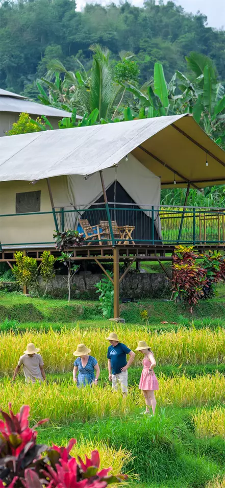 Manggisin riisiterassit ovat sukupolvien ajan olleet kylän elinehto. Nykyään ne ovat myös luomuviljelyyn siirtymisen ytimessä: menetelmät suojaavat maaperää, turvaavat vesilähteet ja luovat terveemmän maiseman tulevaisuutta varten. Kaura Balin tuella paikalliset viljelijät työskentelevät nyt täysin ilman kemiallisia aineita. Vieraana pääset pelloille osallistumaan riisin istutukseen, kompostin kääntämiseen ja vihannesten korjuuseen.