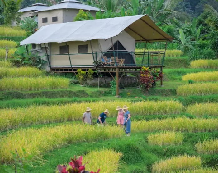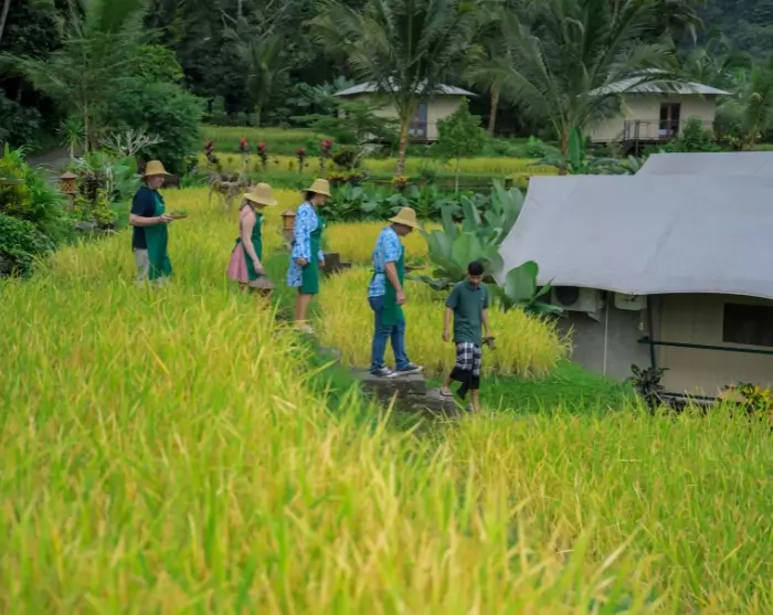 Manggisin riisiterassit ovat sukupolvien ajan olleet kylän elinehto. Nykyään ne ovat myös luomuviljelyyn siirtymisen ytimessä: menetelmät suojaavat maaperää, turvaavat vesilähteet ja luovat terveemmän maiseman tulevaisuutta varten. Kaura Balin tuella paikalliset viljelijät työskentelevät nyt täysin ilman kemiallisia aineita. Vieraana pääset pelloille osallistumaan riisin istutukseen, kompostin kääntämiseen ja vihannesten korjuuseen.