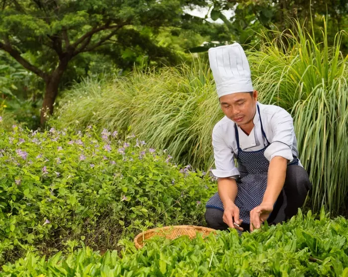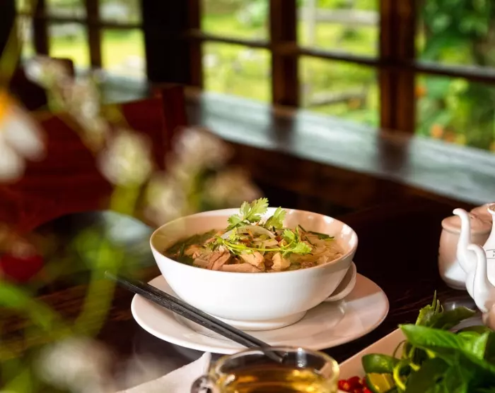 Myös aterioiden suhteen noudatetaan samaa yksinkertaista ja kestävää lähestymistapaa. Ruokalista ei ole turhan laaja, vaan koostuu muutamasta tarkkaan valikoidusta autenttisesta vietnamilaisesta ruokalajista. Seisovia pöytiä vältetään ruokahävikin vähentämiseksi.