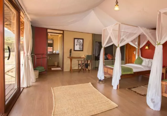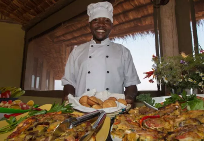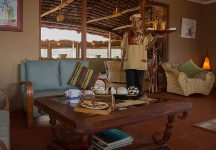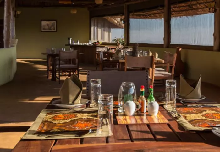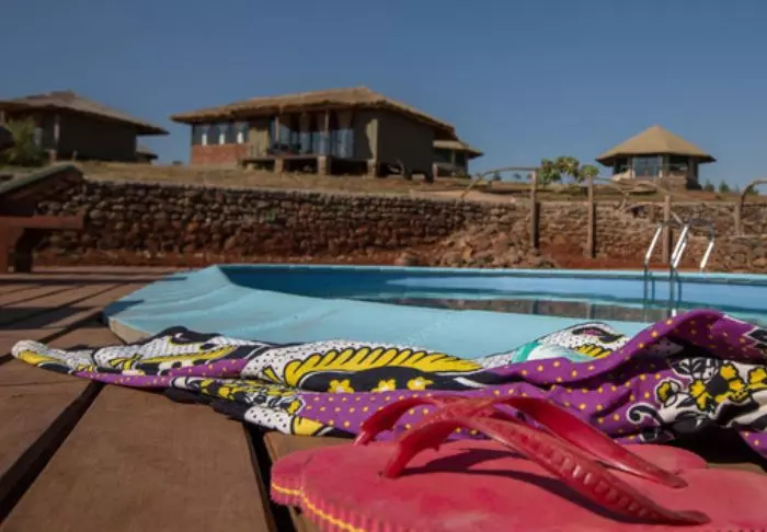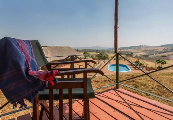 Nauti safarin jälkeen viilentävästä uinnista pienessä uima-altaassa ja illalla kylmistä juomista leirinuotion äärellä. Iltaisin on tiedossa myös maittava illallinen: raaka-aineet saadaan lodgea ympäröiviltä pelloilta, ja kahvi on tietenkin paikallista!