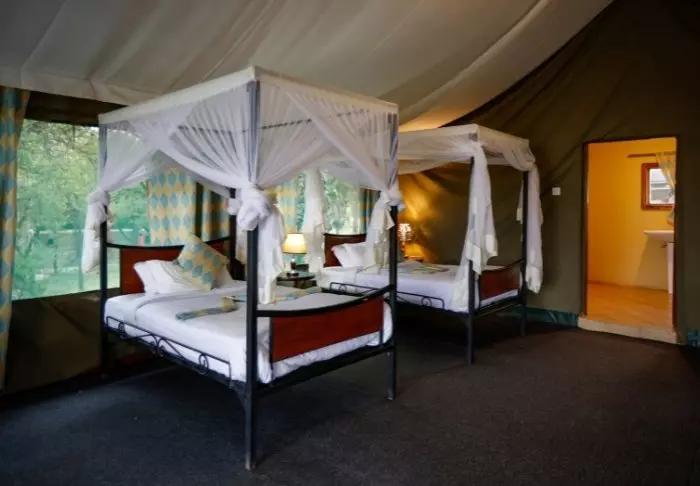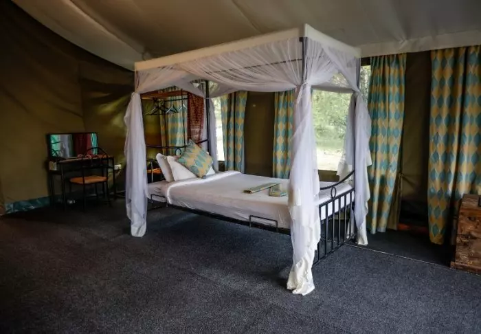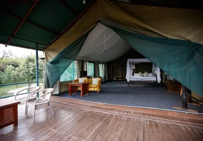 Ngorongoro Wild Camp koostuu 20 suuresta, täysikorkuisesta teltasta, joissa on kiinteät lattiat. Teltat on rakennettu korkealle pilarien päälle, mikä antaa uskomattoman hienon näköalan teltan ulkopuolella olevalta terassilta. Kaikissa teltoissa on oma suuri, laatoitettu kylpyhuone. Kylpyhuoneessa on juokseva vesi, suihku ja WC.