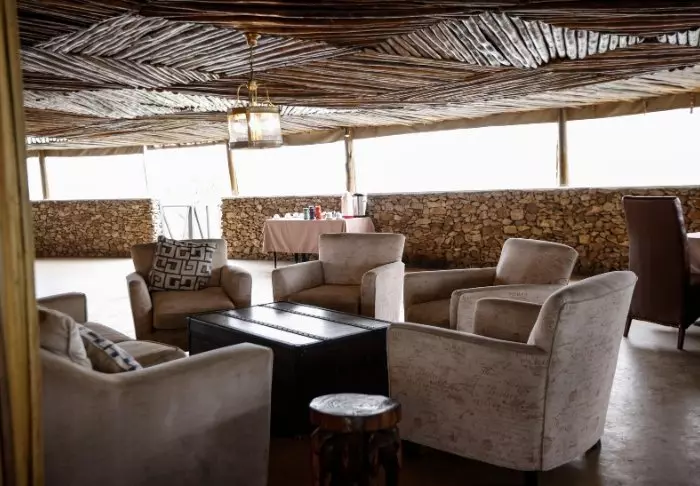 Myös ravintolasta on panoraamanäkymä tasankojen yli, ja tämän parempaa näköalaa et Serengetistä löydä.
