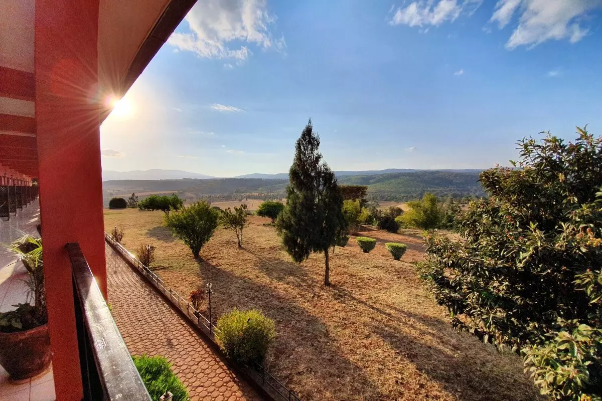 Majoitut Highview Hotelissa, joka sijaitsee kukkulan rinteellä. Hotellilta avautuu kaunis panoraamanäköala värikkääseen ja vehreään laaksoon ja kahviplantaaseille, joilla norsut tapaavat vaellella aamujen ja iltojen viileydessä.