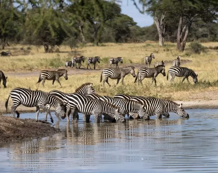 Iltapäivällä on ohjelmassa safari Tarangiren kansallispuistossa. Tiedossa on ainakin laumoittain norsuja! Tarangiressa elää nimittäin Pohjois-Tansanian suurin norsupopulaatio. Norsut viihtyvät täällä monesta syystä. Yksi tärkeimmistä syistä on, että niillä on Tarangiressa aina juomavettä. Myös kuivimpina vuodenaikoina, kun joki on lähes ehtynyt, norsut osaavat kaivaa vettä esiin.