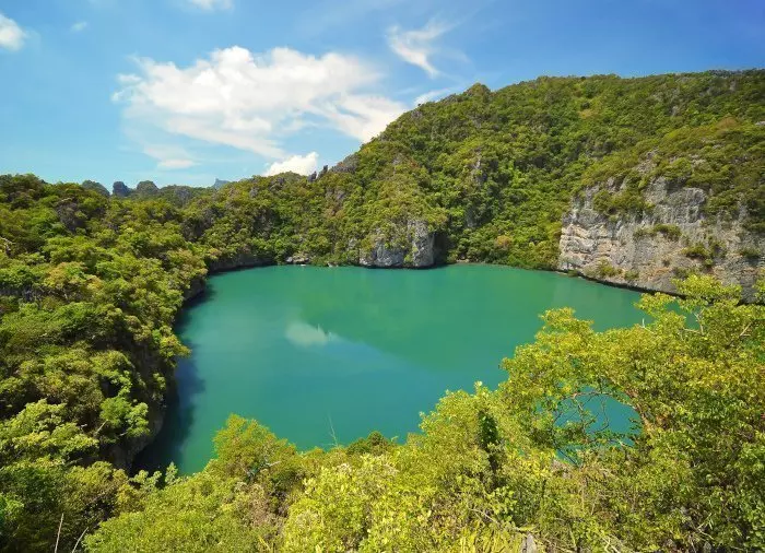 Ang Thong National Marine Park -merikansallispuisto koostuu 42 pienestä kalliosaaresta, jotka kohoavat merestä kuin helmet helminauhassa. Luonnonpuisto tarjoaa upeita paratiisirantoja, loistavia snorklauskohteita, jännittäviä luolia, järviä, vesiputouksia ja henkeäsalpaavia näköaloja.