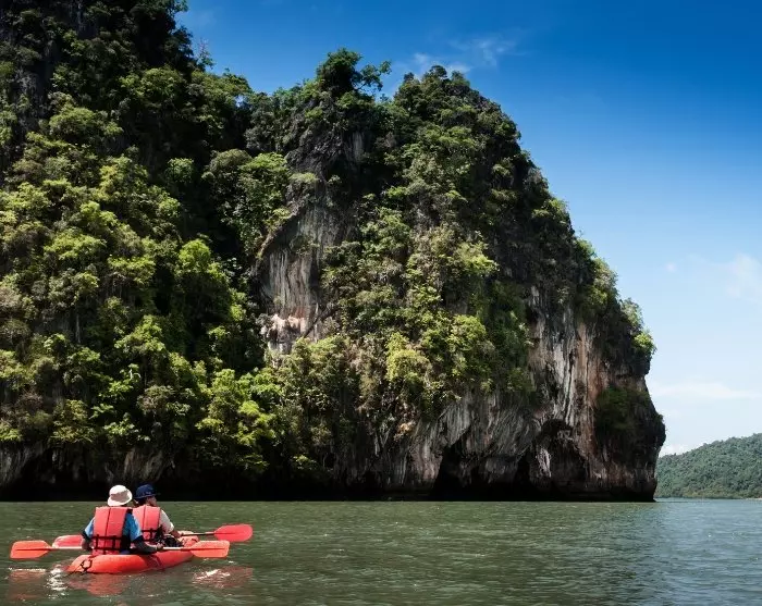 Seuraavaksi matka jatkuu pitkähäntäveneellä Koh Aungin ja Koh Talabengin saarille, jotka tunnetaan ikonisista karstikukkuloistaan ja viehättävistä poukamistaan. Koh Talabengilla on ohjelmassa unohtumaton melontaretki, jonka aikana koet saaren koskemattoman luonnon, upeat karstikalliot ja kiehtovat luolat.