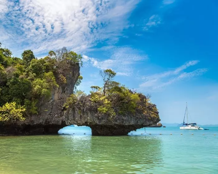 Seuraavaksi purjehdit viehättävälle pienelle Nok Islandille, joka tunnetaan koskemattomasta luonnostaan. Pehmeitä, vaaleita hiekkarantoja huuhtelee kristallinkirkas vesi, joten tämä on ihanteellinen paikka auringonottoon ja uintiin.