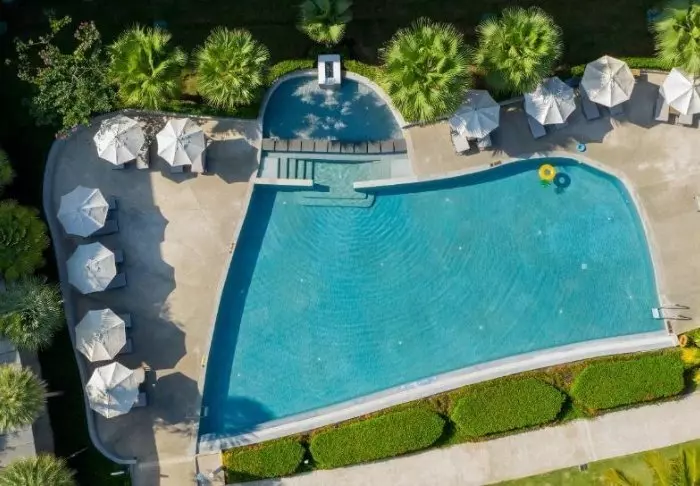 Resortissa on yli 400 huonetta, mutta koostaan huolimatta se on erittäin viihtyisä ja viehättävä. Hotelli on jaettu pienempiin osiin, jotka sijaitsevat vehreässä puutarhassa. Vieraiden käytössä on peräti 6 uima-allasta, joten tilaa riittää varmasti, eikä omaa rauhaisaa nurkkausta ole vaikea löytää.