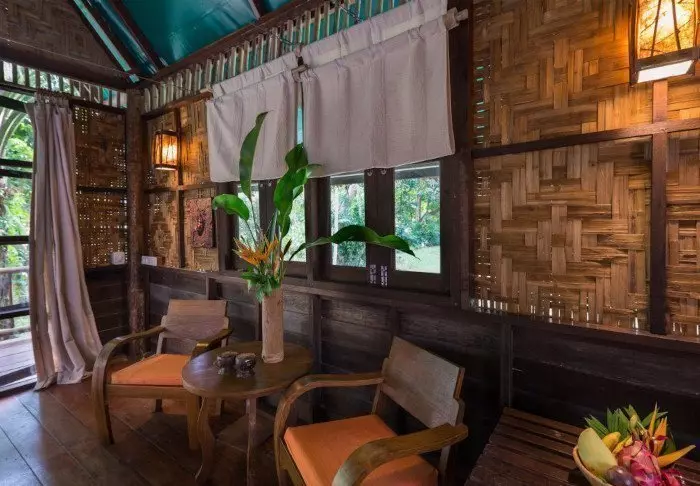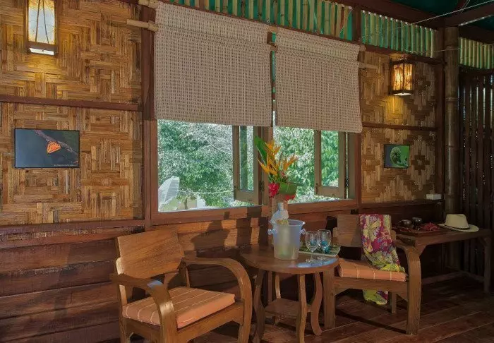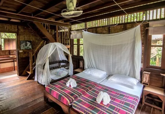 Huoneita on yhteensä 20, ja ne on sisustettu yksinkertaisesti, mutta viihtyisästi. Osa huoneista on rakennettu maan päälle, osa taas paaluille puiden latvuksiin. Kaikissa huoneissa on oma kylpyhuone ja joko oma parveke tai terassi. Televisiota ei ole, mutta heti ovelta aukeaa ihmeellinen luonto, joka tarjoaa paljon nähtävää. Jos kuitenkin haluat pitää itsesi ajan tasalla maailman menosta, voit käyttää resortin ilmaista WiFi-yhteyttä. Ympäristösyistä huoneissa ei ole ilmastointilaitteita. Katossa on kuitenkin kattotuuletin, joka viilentää mukavasti viidakon kuumimpina öinä. Vuoteiden ympärillä on hyttysverkot, joten voit nukahtaa rauhassa ulkoa kaikuvia viidakon ääniä kuunnellen.