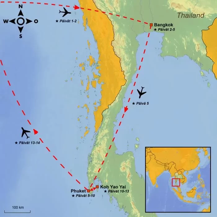Tämä matka tarjoaa hyvin erilaisia elämyksiä, ensin Bangkokissa ja sitten Phuketin ja Koh Yao Yain saarilla.