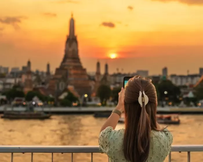 Illan päätät rennossa kattobaarissa Chao Phraya -joen rannalla, ihaillen valaistua Wat Arun -temppeliä. Näköala on yksinkertaisesti vertaansa vailla!