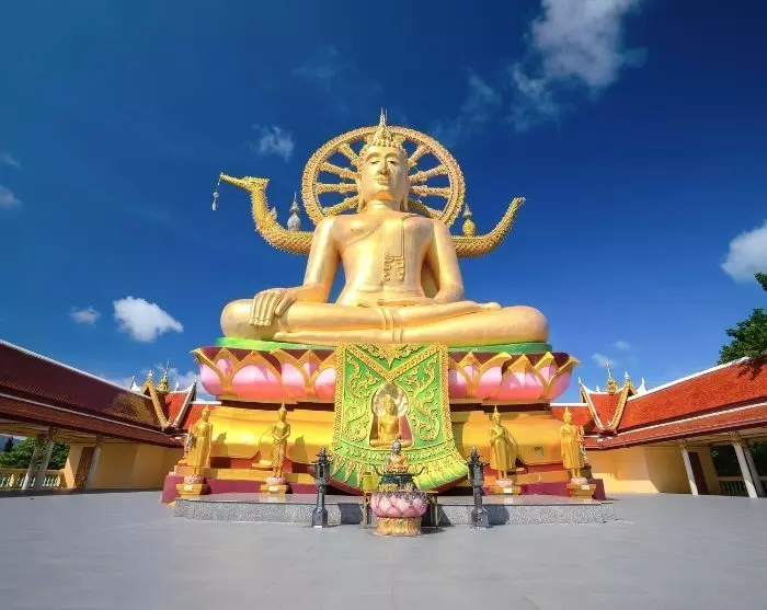 Ensimmäinen vierailukohde on Big Buddha -temppeli, joka on Koh Samuin tärkein maamerkki. Valtavalle, auringossa kultaisena hohtavalle Buddhan patsaalle pääset nousemalla 72 porrasta. Patsaalta avautuu upea näköala merelle.