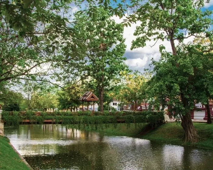 Bangkokin alueella on myös paljon viheralueita, jotka tarjoavat viileämmän ja rauhallisemman levähdyspaikan keskustan trooppiselta kuumuudelta ja liikenteen hälyltä. Tällaisia alueita ovat esimerkiksi Lumpinin tai Benjakittin puistot ja Bang Krachao, jota kutsutaan usein ”Bangkokin viidakoksi”. Kaupungin vihreässä keitaassa aikakin tuntuu pysähtyneen.