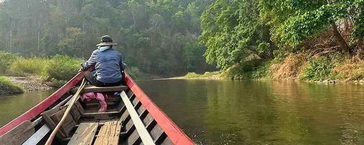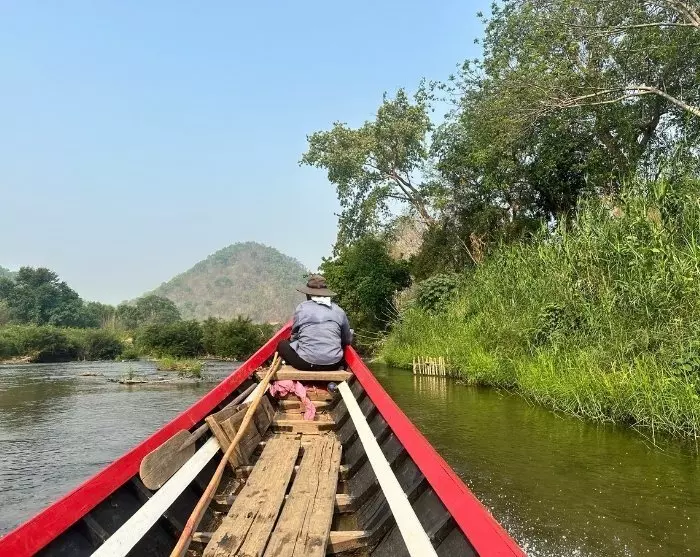 Kierros jatkuu Pai-joelle, jossa matkustat paikallisella moottoriveneellä Huay Pu Keng -kylään, jonne pääsee vain vesiteitse. Veneretki luonnokauniilla joellla on uskomattoman kaunis, ja matkan varrella näet erilaisia lintulajeja ja ehkä jopa liskoja.