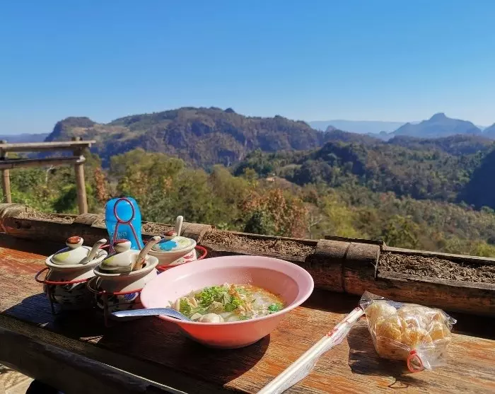 Matkan varrella pysähdyt Ban Cha Bon vuoristokylässä, jossa Lahu-kansa asuu. Kylä tunnetaan aidosta kulttuuristaan ja upeista maisemistaan. Lounas (ei sisälly hintaan) tarjoillaan paikallisessa ravintolassa, jossa voit ruokailla vuorenrinteillä olevalla parvekkeella ihaillen samalla upeita näkymiä ympäröiville vuorille ja laaksoihin.