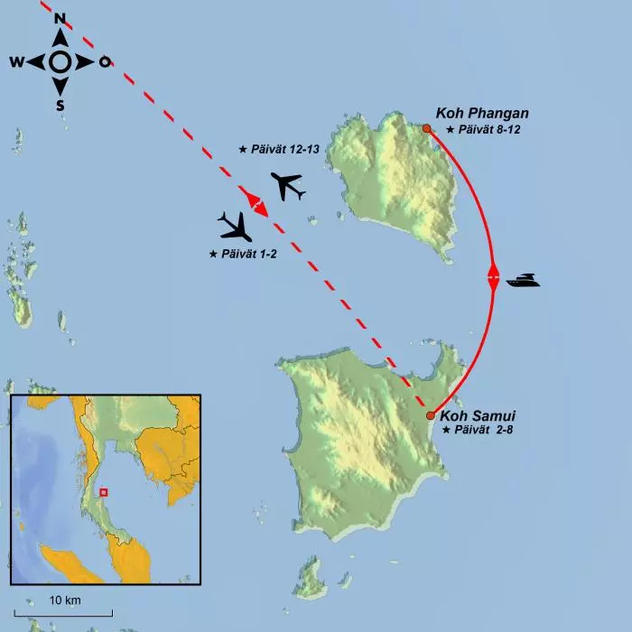 Koe saarihyppelyllä kaksi Kaakkois-Thaimaan luonnonkaunista helmeä: Koh Samui ja Koh Phangan.