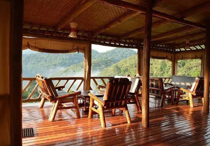 Maisemista voit nauttia esimerkiksi lodgen loungealueelta ja ravintolasta käsin samalla, kun maistelet ugandalaisten kokkien paikallisista raaka-aineista valmistamia herkkuja, joissa yhdistyvät afrikkalaisen ja kansainvälisen keittiön parhaat maut. Lodgen ravintola pakkaa sinulle myös eväät mukaan, kun lähdet jäljittämään gorilloja.