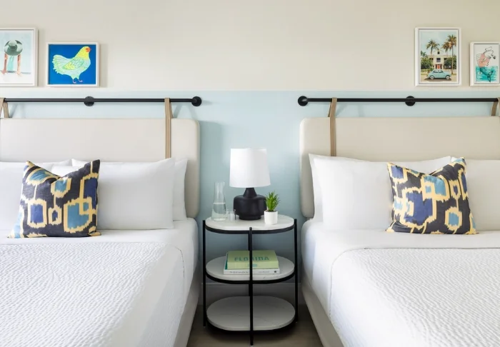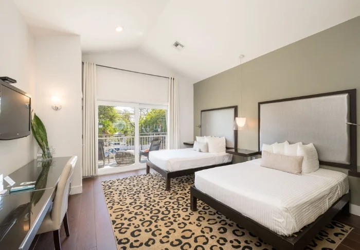 Blue Flamingo Resort Key West -hotellissa on 100 valoisaa ja tilavaa nykyaikaiseen tyyliin sisustettua huonetta. Huoneissa on kierrätetystä puusta valmistetut vuoteet ja seinäpäällysteet, jotka takaavat miellyttävän ja rennon ilmapiirin. Kaikissa huoneissa on TV, WiFi, kahvinkeitin, minibaari, ilmastointi ja oma kylpyhuone hiustenkuivaajalla ja kylpytakeilla.