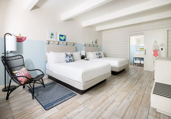 Resortin viehättävät puutalot on rakennettu karibialaistyylisesti vaalein pastellivärein, ja ne on reunustettu palmuilla ja useilla vihreillä keitailla, jotka luovat upean lomailmapiirin. Lämmin ja rentouttava tunnelma näkyy myös lomakeskuksen 261 huoneessa, jotka on kalustettu puukalusteilla ja värikkäillä karibialaisprinteillä tyynyissä ja seinäkoristeissa. Kaikissa huoneissa on ilmastointi, maksuton WiFi, TV, teen- ja kahvinvalmistusvälineet, tallelokero ja oma kylpyhuone.
