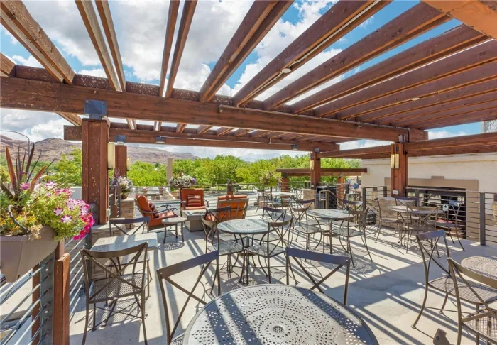 Kun et ole patikoimassa punaisissa kalliomaisemissa, voit treenata hotellin kuntokeskuksessa tai rentoutua ulkouima-altaalla ja porealtaalla (ajoittain suljettu säästä riippuen). Viileämpien kuukausien aikana on myös mukava istuskella takan ääressä yhteisissä oleskelutiloissa, siemailla kahvia ja sulatella päivän kokemuksia.