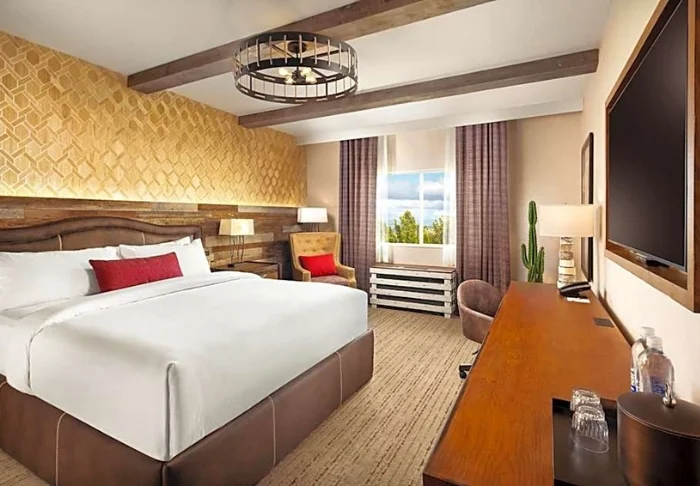Lodgetyylisessä hotellissa on kaikkiaan 368 tilavaa huonetta. Huoneet on sisustettu maanläheisillä sävyillä ja puukalusteilla, mikä luo rentoa tunnelmaa, jossa on mukava rauhoittua luonnossa vietetyn päivän jälkeen. Kaikissa huoneissa on ilmastointi, televisio, ilmainen WiFi, kahvin- ja teenkeittotarvikkeet sekä oma kylpyhuone, josta löytyy ilmaisia kylpytuotteita ja hiustenkuivaaja.