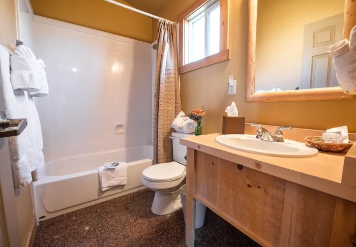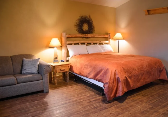 Red Feather Lodge koostuu kahdesta osasta, joista toinen on hotelli ja toinen vanhempi motelli. Tarjoamme huoneita vain hotelliosasta, joka on remontoitu 2019. Nykyaikaisuus näkyy selvästi siisteissä huoneissa, joissa on säädettävä ilmastointi/lämmitys, kahvinkeitin, minijääkaappi, mikroaaltouuni ja ilmainen Wi-Fi. Kaikissa huoneissa on oma kylpyhuone hiustenkuivaajalla.